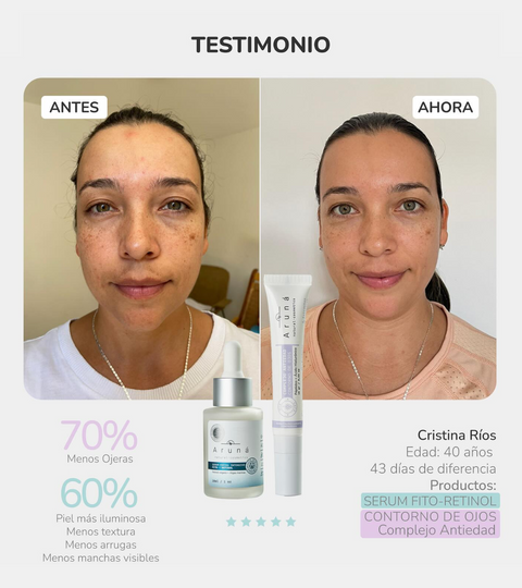 Revitaliza tu piel con nuestro combo antiedad. El Fito-Retinol estimula la renovación celular sin irritar, mientras que el contorno de ojos con Argireline y extracto de café combate líneas de expresión y reduce bolsas y ojeras. ¡Una combinación perfecta para una piel firme, luminosa y rejuvenecida!