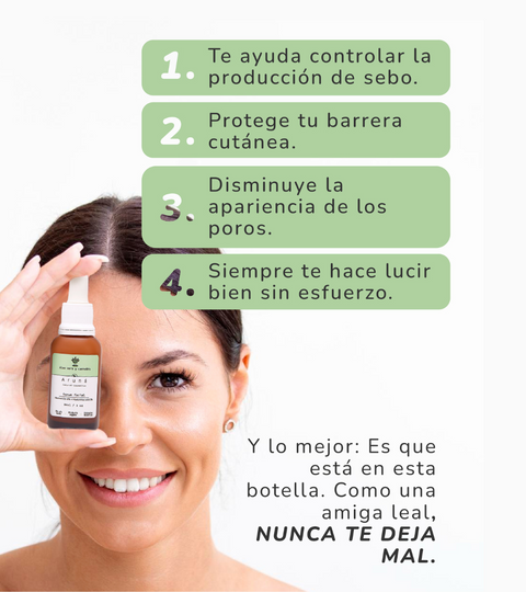 Aplica las gotas necesarias para cubrir todo el rostro, esparce con la ayuda de las manos hasta su total absorción.