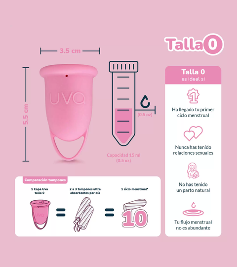 La talla 0 es ideal para mujeres adolescentes, que nunca han utilizado una copa menstrual antes y también para aquellas que: