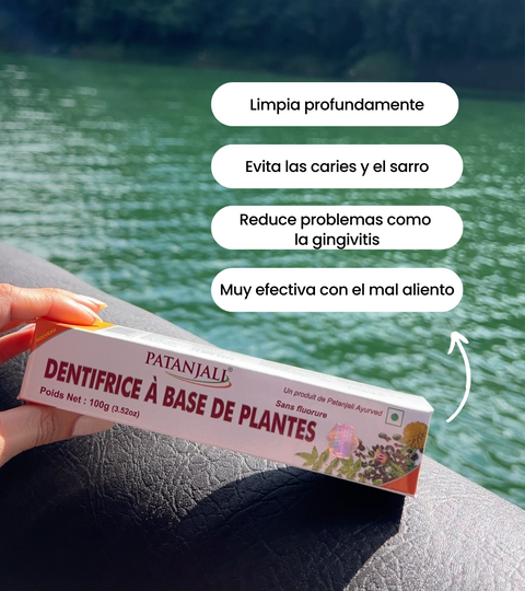 La pasta de dientes natural Patanjali Dant Kanti es una crema dental a base de hierbas que contiene plantas, ingredientes ayurvédicos y aceites esenciales. Ayuda a prevenir y reducir el dolor en las encías y los dientes. Proporciona un olor refrescante y puede ayudar a las personas a deshacerse del mal aliento. Ofrece desde protección dental hasta belleza dental, funciona para proteger y embellecer sus dientes.