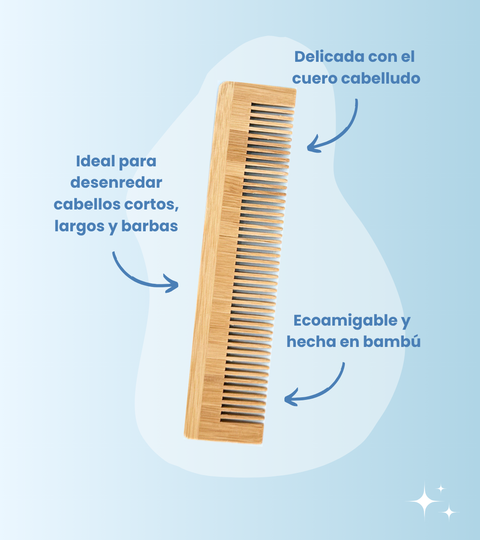 Está peinilla hecha 100% en bambú es perfecta para desenredar cabellos, cortos, o largos, barbas de una manera efectiva y fácil. Es biodegradable por lo que cuida el medio ambiente.