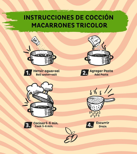 ✸ Cocción: Por cada 100 gramos de pasta, hervir en una olla honda 2 litros de agua y 10 gramos de sal.
