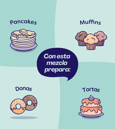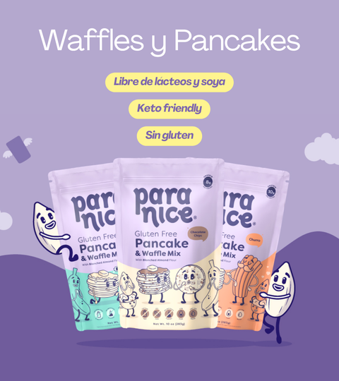 Pero mejor, en forma de Pancakes y Waffles. Esta mezcla la desarrollamos para que sientas que te estas comiendo un postre delicioso y con tu topping preferido como miel, mermelada, salsa de chocolate o lo que prefieras. ¡Es, indiscutiblemente, una explosión de sabor que te llenará de felicidad!