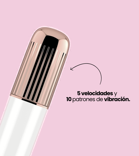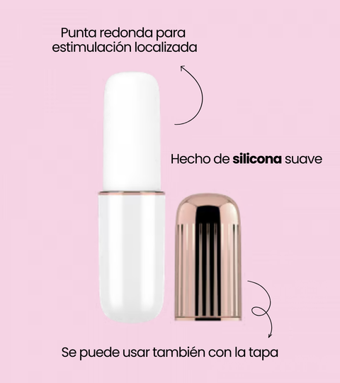 ¡El compañero de viaje ideal! Este mini vibrador se camufla como un labial, es elegante y se puede llevar a todas partes. Se controla por medio de una pantalla táctil y su material es silicona grado médico, mucho más suave que cualquier otro.
