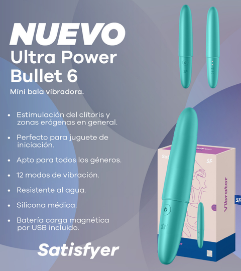 Dentro de las mini balas vibradoras de Satisfyer, este nuevo modelo Ultra Power Bullet 6 se caracteriza por su diseño ergonómico, funcional, orientado a un tipo de estimulación mucho más precisa, y sencillo manejo que permite disfrutar del placer de forma rápida y eficaz.