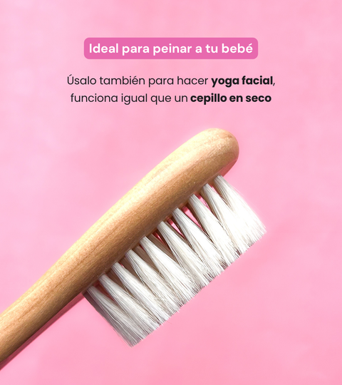 ✸ Para bebés: Es ideal para masajear delicadamente la piel de tu bebé. Puedes sumergir el cepillo en agua y usarlo también para peinar el cabello de tu bebé.
