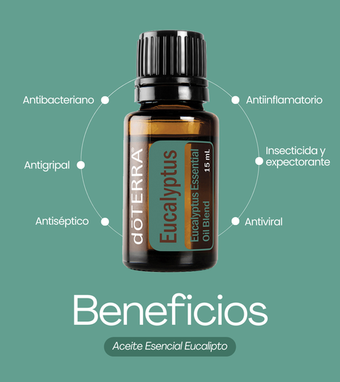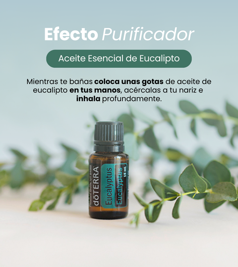 El eucalipto tiene propiedades purificantes que pueden ser benéficas para la piel y provee un aroma limpiador. Estudios han demostrado que el aceite de eucalipto puede ayudar a reducir la tensión.
