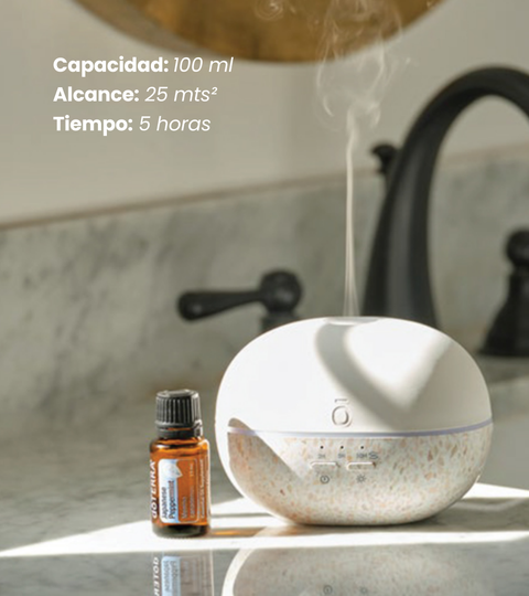 El tamaño del difusor doTERRA Pebble lo convierte en una adición sutil a la decoración de su hogar al mismo tiempo que le permite disfrutar de todos los beneficios de difundir sus aceites esenciales favoritos.