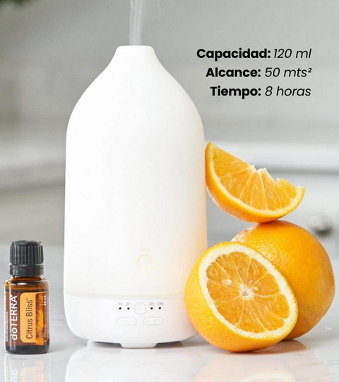 Este escultural difusor crea vibraciones ultrasónicas, transformando el agua y los aceites esenciales en un vapor aromático.