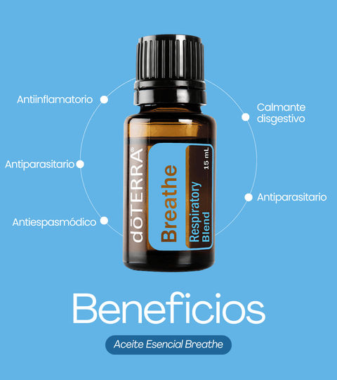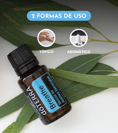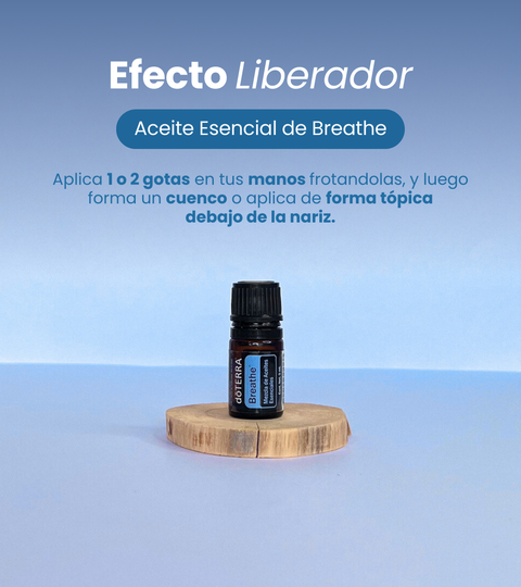 El refrescante aroma de doTERRA Breathe, una popular mezcla de aceites esenciales, puede aplicarse tópicamente en el pecho, la espalda o las plantas de los pies, o usarse por la noche para calmar los sentidos y promover el sueño reparador.
