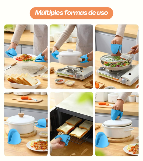 ¡Cocina con confianza usando nuestros mini guantes de silicona! Perfectos para manipular objetos calientes, estos guantes te protegen de quemaduras y te ofrecen un agarre seguro y antideslizante.