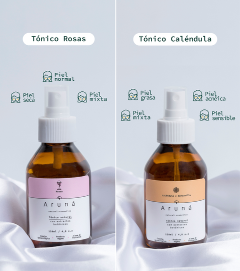Formulado a base de hidrolato de rosas y caléndula (Cada uno con su % más alto de hidrolato diferenciador) y además contiene romero, lavanda y cola de caballo que gracias a su alto contenido de ácido rosmarinico y alantoina ayuda a prevenir y corregir la flacidez de la piel. Ayuda a disminuir los signos de fatiga en el rostro.